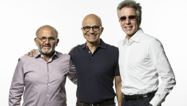 美国当地时间9月27日上午,在奥兰多举行的年度微软大会上,微软CEO纳德拉(Satya Nadella)在演讲中邀请SAP的CEO Bill McDermott, Adobe的CEO Shantanu Narayen一起上台, 共同宣布三家公司将彼此开放数据研究,为客户提供更好的数据连接和AI服务。