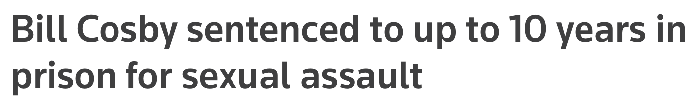 今年81岁的科斯比4月被陪审团裁定三项重度猥亵侵犯罪名成立,他2004年在费城家中对前女性朋友Andrea Constand下麻药后性侵。法官下令科斯比立即入狱服刑。