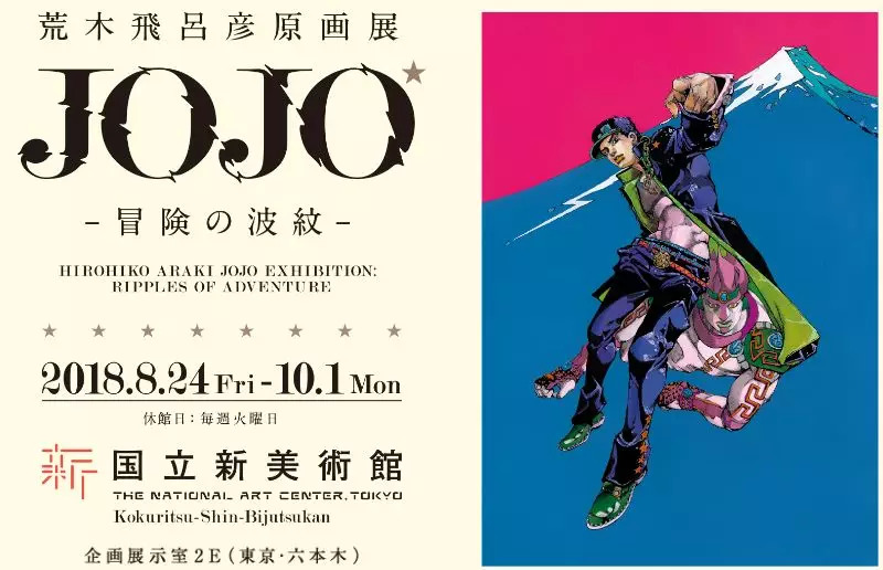 漫画家荒木飞吕彦在日本国立新美术馆举办的原画展,展名为《JoJo 冒险の波纹》。