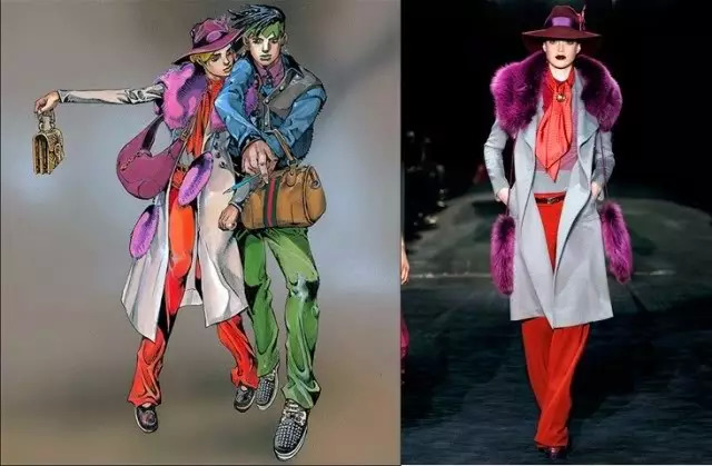 《JOJO》中角色的穿着装束,极大一部分参考了著名时尚品牌,像是Versace(范思哲)、Moschino(莫斯奇诺)等。