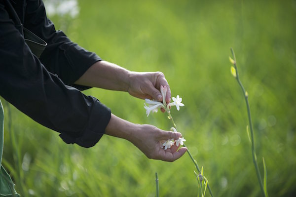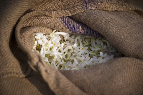 已是中午十一点半了,9月的格拉斯(Grasse)在炙热太阳的烘烤下,土地散发着混合了水汽和泥土的气息,45名工人还在花田里左右手开弓地采摘着茉莉。他们的双眼不能左顾右盼,必须专注在花托上的白色小花上。从早上7点忙到下午1点,每个人最后会大约采摘下8万多茉莉,差不多80到110公斤重。