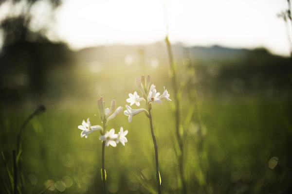 采摘晚香玉的方法,和采摘茉莉也全然不同。要摘下一株晚香玉已经开放的花朵,手法是从下往上,从花朵的侧面轻掰。但茉莉花则是一片片生长,得五指并拢捏住花朵,轻轻扯离花托。