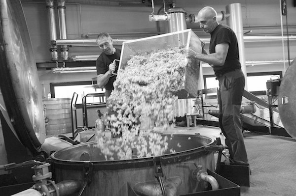 然后这些花将会迅速被送到距离这片花田不远处的工厂,经过乙烷和酒精长达一整个下午和夜晚的萃取,一连串物理变化后,出来的是一桶桶的茶褐色固体精油。而后进入下一段旅程,抵达巴黎近郊的生产工厂,在那里它们将变成液体。
