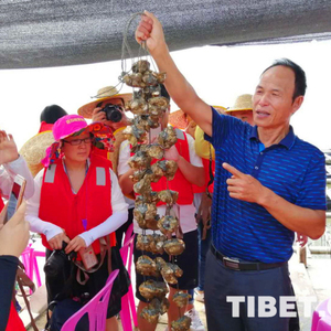 一只蚝的生长周期为三年,此前蚝农养蚝从生长期到肥蚝期都是在同一片海域养殖。由于蚝场开发已久,养殖密度大,海水营养弱化,蚝的肥度不足,导致质量欠佳。为此,红光村积极摸索新型养殖模式,尝试采用胶丝绳粘蚝吊养,将蚝苗取下,按照背靠背,用水泥将蚝苗粘在胶丝绳中再放到蚝棚中吊养,每条绳长2米,共贴9对18只。“这样的工序简单,操作方便,且大大提高吊养密度,减轻蚝棚的承受力,不仅蚝的肥度高,质量好,而且肥得快。”谢家贵说,利用绳子的随浪性,增大和延长蚝的摄食空间及摄食时间,使所吊养的蚝易大快肥,蚝体大小均匀、产量高,达到最佳效果。