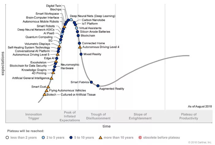对行业目前的发展情况,张小军指出,Gartner给出的分析最为精准,现在的AR行业处在谷底,即将反弹。
