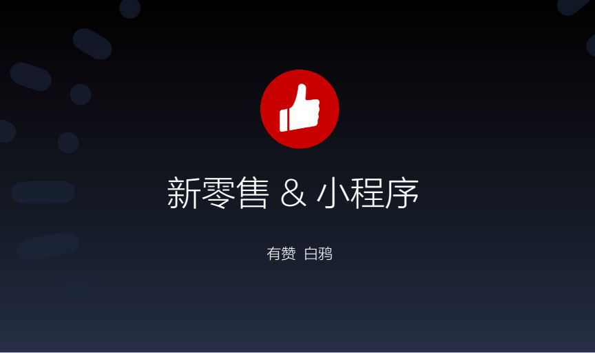 虽然技术上是没有革命性的,但我们发现了一个很有意思的事情,如果微信生态是1的话,微信的红包可能是一个0,这就是10了,公众号可能又是一个0,就是100,小程序再加一个0可能就是1000了,如果前面有那个1,后面的0是非常有用的,如果前面没有1,这个0可能没有太大作用,这是我们看到的今天小程序的变化。