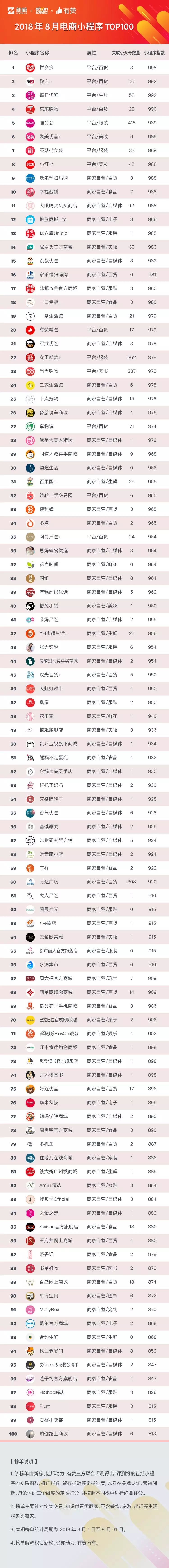 《2018年8月电商小程序TOP100榜单》(新榜、亿邦动力、有赞联合发布)