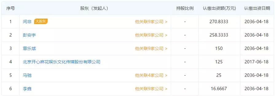 有意思的是,前4家工作室都是麻花旗下几名头部艺人开设的。上海兜宝影视文化工作室成立于2016年,为沈腾独资企业;上海石礁影视文化工作室成立于2017年,为艾伦独资企业;上海花松影视文化工作室成立于2016年,为马丽独资企业;上海木喆影视文化工作室成立于2017年,为常远独资企业。