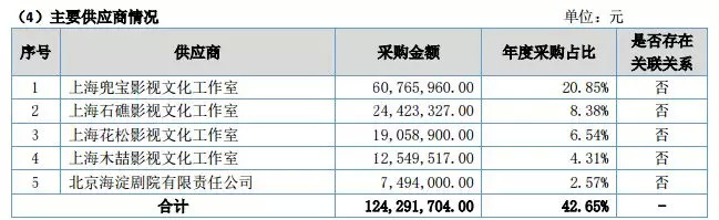 2017年,开心麻花为采购内容,花费了1.24亿元。其中最主要的内容来源,由4家影视工作室承包。