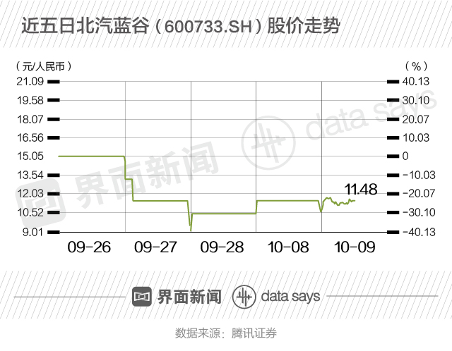 作为国内“新能源车第一股”,北汽新能源借壳北汽蓝谷(600733.SH)上市引起了市场高度关注。上市后其股价经历“过山车”,2018年9月27日当天跌幅高达36.88%,次日涨停报收10.45元。截至2018年10月9日中午收盘,北汽蓝谷涨幅为6.30%,报收11.48元。
