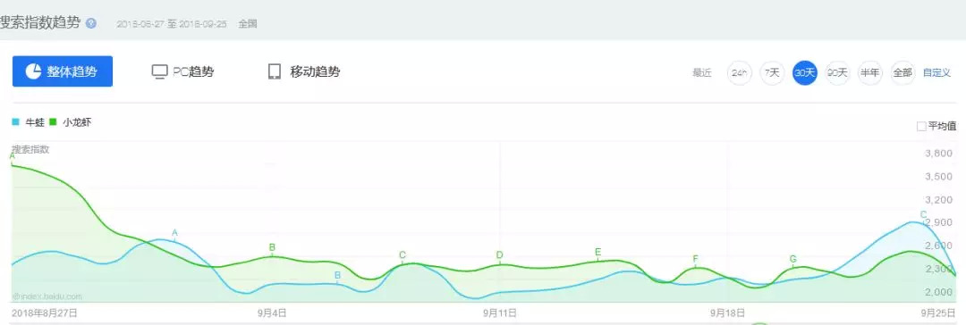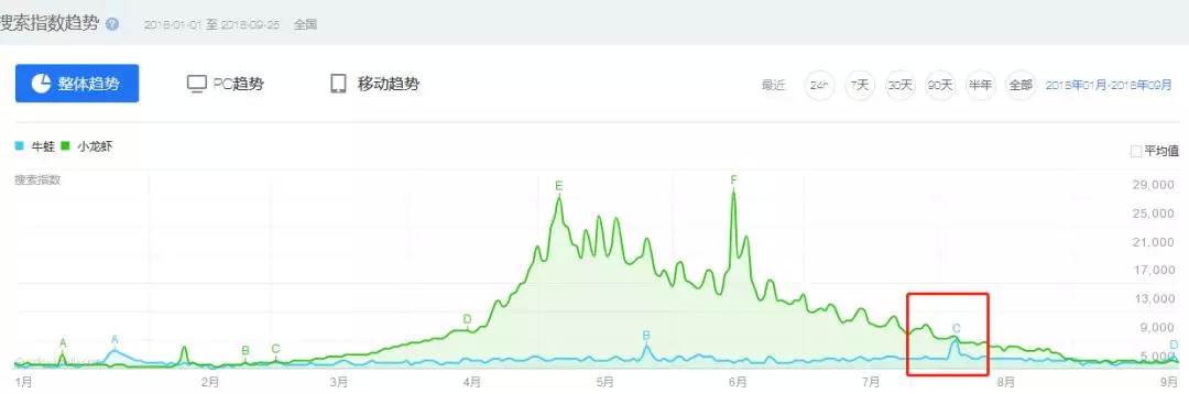 △2018年9月牛蛙和小龙虾的百度指数对比