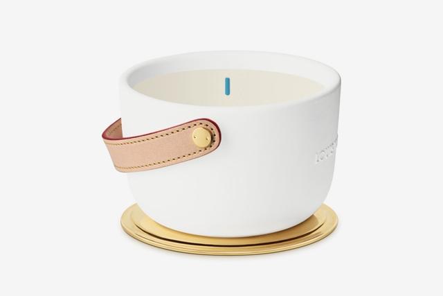 LV此次推出的香氛蜡烛共有4款,按Jacques Cavallier Belletrud的说法是要“捕捉大自然的味道”,然后“转化成理想中的房间的感觉”。这种灵感从4款蜡烛的名字也能体现出来——L'Air du Jardin(花园空气)是在重现玫瑰花蕾的香气,Île Blanche(白色岛屿)有阳光与棉花的温暖,Feuilles d'Or(金色树叶)是在树林漫步时的清新,Dehors Il Neige(窗外飘雪)则是冬天雪夜里的火堆。这款香氛蜡烛的外观颜值颇高,操刀了之前LV香水系列瓶身设计的Marc Newson为这次的香氛蜡烛带来非常讲究的设计——白色陶瓷的杯子上有品牌字样,金属铆钉连着天然皮革的把手,皮革把手不只是作为装饰,更便于手提或悬挂起来,此外金色托盘在不用时可以作为盖子。陶瓷烛杯质感非常好,在烛芯用完后可用作收纳用途,摆在桌面上也是一只赏心悦目的艺术品。