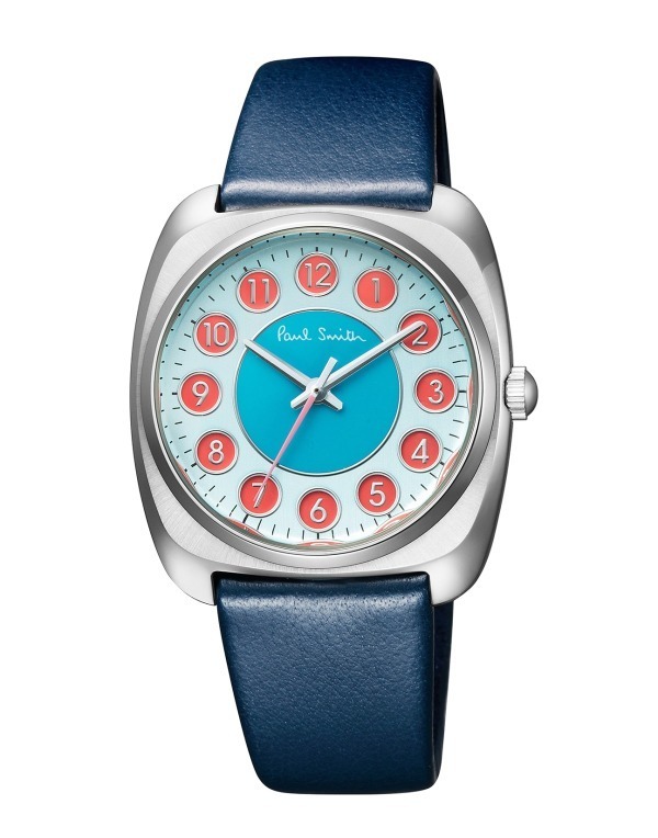 保罗·史密斯(Paul Smith)于10月5日发售新款手表,命名为“拨号”。设计灵感来源于旧式的拨号电话机。表盘的样貌以电话机的机体为基础,表带的设计也是从电话的听筒中得到的灵感。表盘的颜色采用的是Paul Smith的签名配色方案,后盖上印着的图案是设计师Paul Smith的手绘插图。