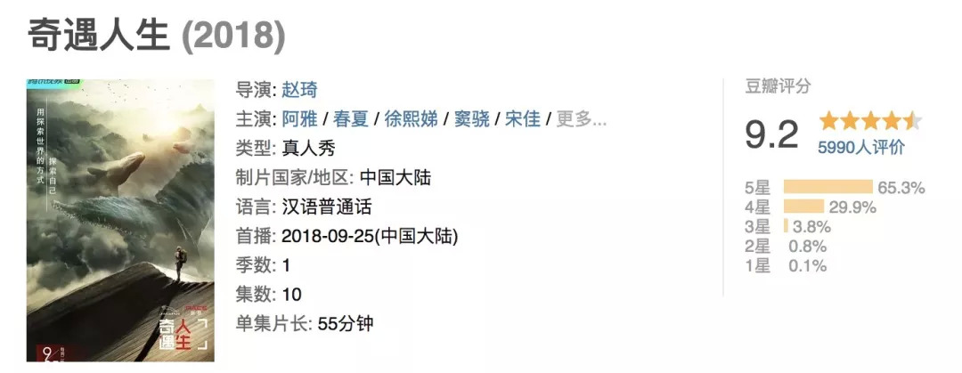 总之,真人秀的纪实化并不是一次短期的投机,而是基于市场深刻变革的自我升级,前路广阔,总是不乏前行开拓的身影,这一次,《奇遇人生》留下了一个新的脚印,而未来还会有更多更成熟的强纪实真人秀,甚至是“纪录片式真人秀”用自己独特的魅力征服观众、征服市场。
