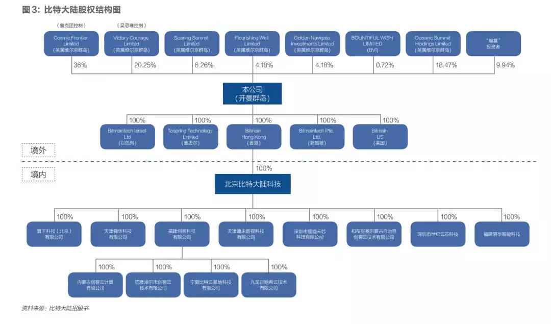 比特大陆招股书显示,公司重组完成后詹克团为比特大陆最大股东,占股36%,吴忌寒为第二大股东,占股20.25%,但并未公布此股份架构的准确时间。