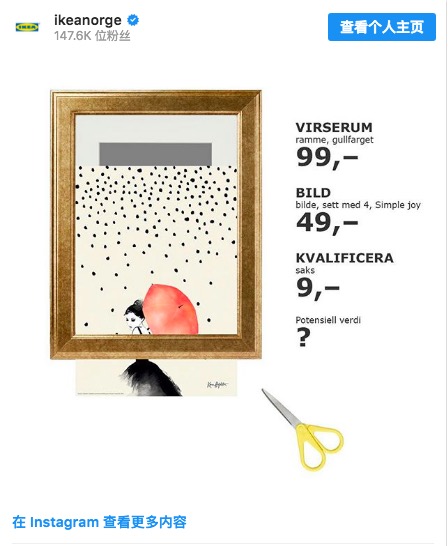 常常在蹭热度大赛中取得好成绩的宜家这次也不甘落后。在宜家,你可以找到很多东西来DIY这次事件,画框、画芯,还有剪刀了解一下。