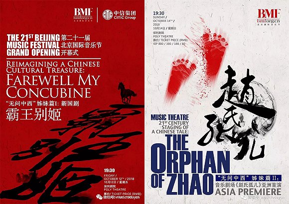 北京国际音乐节将在10月12日-26日这为期15天的时间里,为观众献上21场演出,涵盖了全舞台、半舞台、浸没式原创、音乐剧场等形式的剧目,以及交响乐、室内乐、电影交响现场音乐会等多个种类的演出。据音乐节艺术总监邹爽介绍,在所有节目当中,最具特色的要属“无问中西”姊妹篇里的新国剧《霸王别姬》和音乐剧场作品《赵氏孤儿》。这两部作品均由陈士争导演,前者将作为开幕式演出亮相,后者则是亚洲首演。
