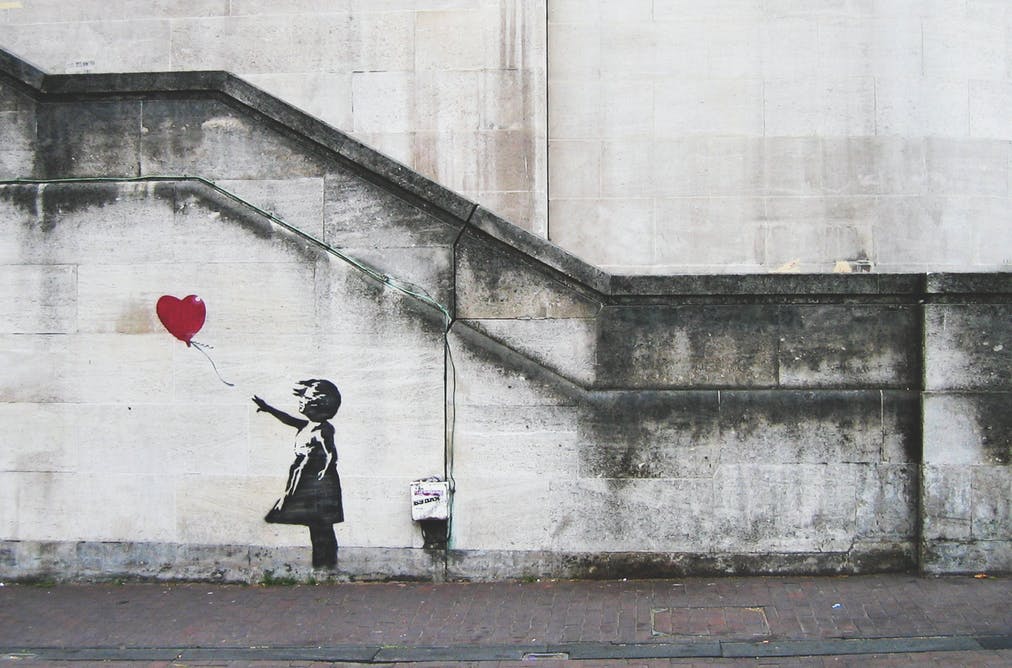《三联生活周刊》在《百万名画自毁:我们都被“班克斯”了》一文中介绍了《带气球的女孩》这幅画的来历。《带气球的女孩》原本是班克斯的一幅街头涂鸦作品,创作于15年前,画面上一个小女孩痴痴地望着逐渐飞远的红色心形气球,神色忧伤。2012年,这幅涂鸦以版画复刻的形式拍出了7.3万英镑的价格。2014年,原作被移走。