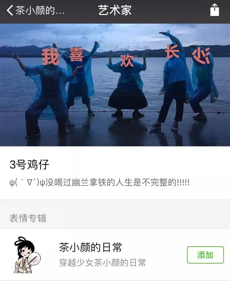 据了解,茶颜悦色这套表情包是品牌内部插画师做的。虽然没有明显的广告痕迹,但艺术家主页一句“没有喝过幽兰拿铁的人生是不完整的”;和封面图中“我喜欢长沙”,加上表情主体使用了LOGO形象,已经很“赤果果”地宣告:我就是茶颜悦色。