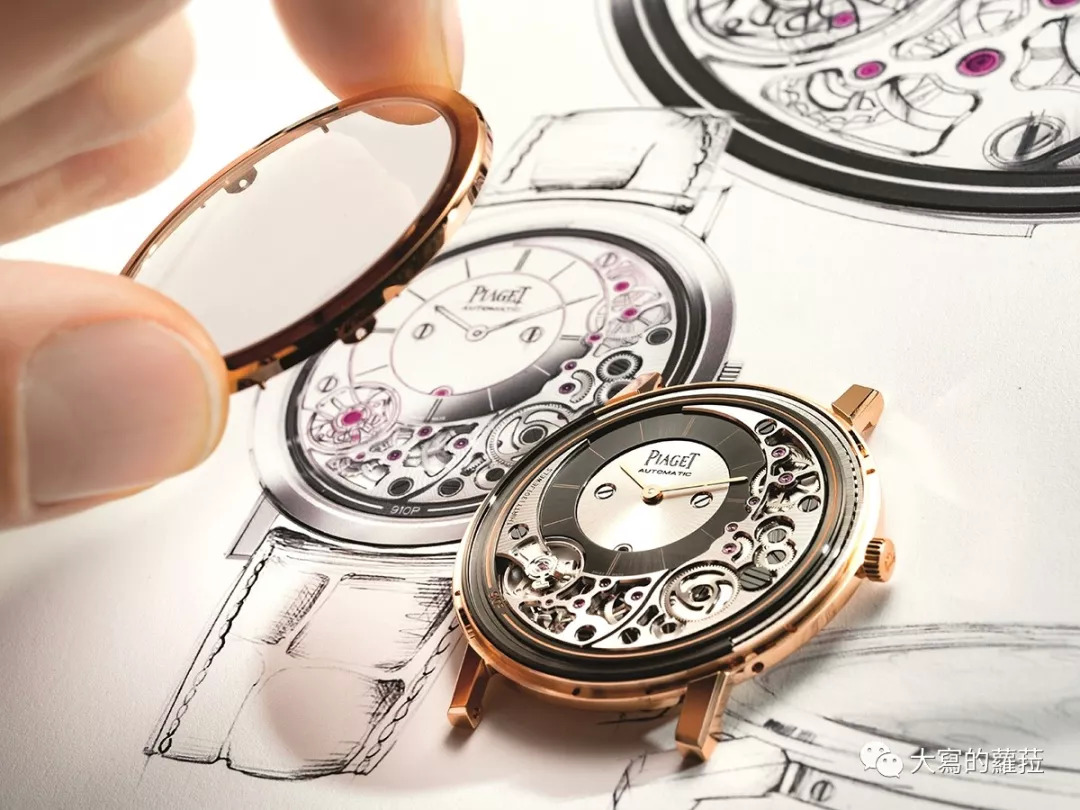 △ 伯爵910P腕表,外缘式自动盘结构位于表款正面。