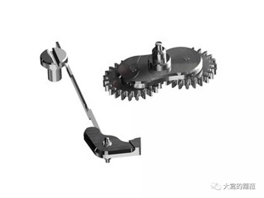 2/切换摇轴切换摇轴(Switching Rocker)是一种与双止逆轮概念相似的双向上链系统,是在两个并连的止逆轮系当中,透过一个传动轴承(也就是切换摇轴)相互牵动。摆陀朝任一个方向转动最先牵动切换摇杆中的第一个齿轮,然后牵动第二个齿轮,接着第二个齿轮将会连动第一个减速轮,并将对发条盒上链储能。反之,如果摆陀向另一个方向转动,就会从第二个齿轮将第一个减速轮连接传动切换到由第一个齿轮传动第一个减速轮对发条盒上链。积家的889与爱彼3120自动上链机芯采用的便是这样的双向上链系统。