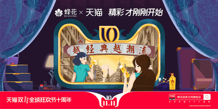 还有一点,借助今年“天猫国潮行动”的余温,更多的国货品牌参与到了猫头海报的联合中来,比如:老干妈、中街1946、蜂花等,也正应了主题:国货的精彩,才刚刚开始。