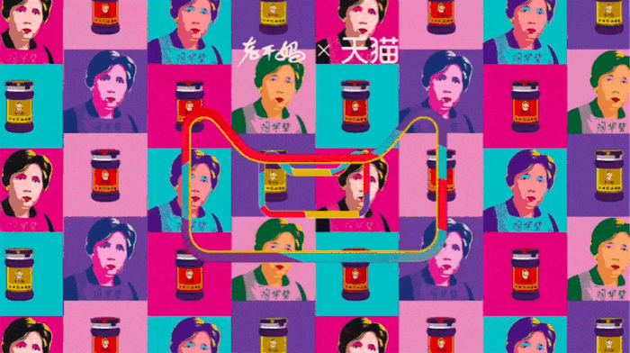 i2mago在创意过程中,发现老干妈与波普艺术的视觉符号十分契合,以色彩冲突强烈的波普艺术,将老干妈辣酱创始人陶华碧女士的经典形象及老干妈产品用安迪沃霍尔的经典风格呈现,并用辣酱质感的涂鸦字体来视觉化呈现“越辣越火辣”的口号,进而延展出一套跨界艺术融合的双十一品牌视觉。