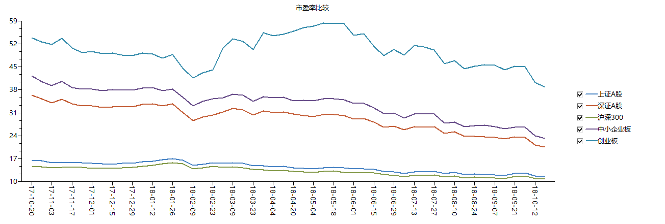 而横向比较来看,上证综指当前估值为11.39倍,深证成指为16.46倍,中小板指为19.78倍,沪深300指数则为10.70倍,创业板指相对其他指数估值依旧较高,但历史数据显示,在此轮大跌行情中,创业板指估值下滑速度明显高于其他指数。