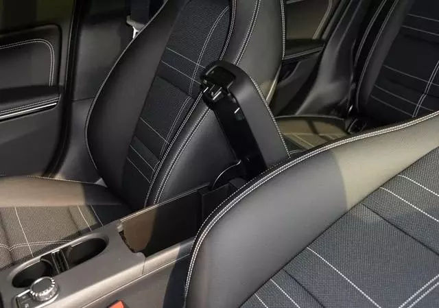进入车内,疆哥实在忍不住要宣泄一句:这头部空间也太窄了!,疆哥178的身高头都已经要“触顶”了,这实在难以让人想像这一是一款SUV定位的车型。即便是作为跨界车款,这样的车内空间表现也实在是不太令人满意。GLA的轴距本就不突出,属于紧凑级的2699mm,并且内部完全就是A级车的样子,就像一台A级车穿了双高跟鞋。