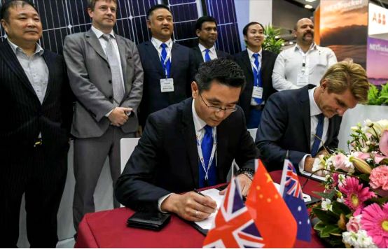 林海峰(后排左3)参加收购西澳百兆瓦电站项目开发权签约