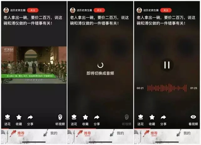 2、功能上,具备“看视频”和“听视频”间来回切换的功能,两种模式的区别在于,“听视频”无画面内容;