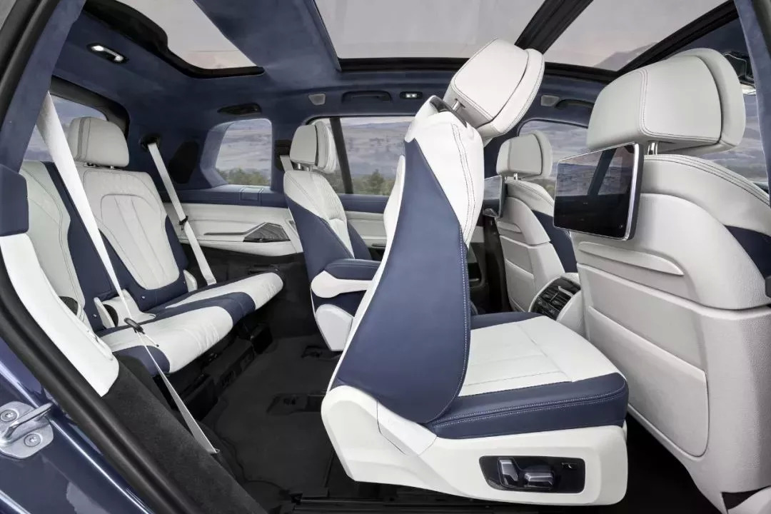 创新BMW X7提供三排座椅,包括可选6座(行政舒适)和7座(实用多功能)双重座位布局。
