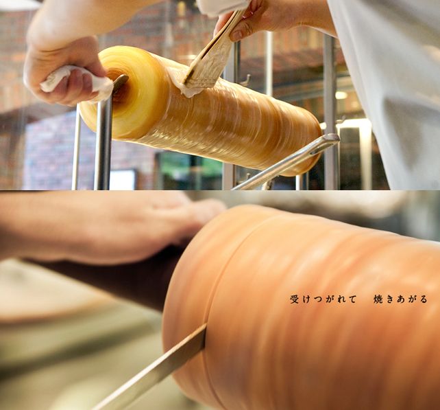 一层层人工烤制的年轮蛋糕,每层“年轮”都像真正的树木年轮一样逐层增长,粗细不一,质朴自然。年轮蛋糕也可浇上糖汁或者熔化的巧克力覆盖在表面,风味可以更加浓厚。由于年轮蛋糕上一重重的年轮象征着树木的繁荣与长寿,在日本,年轮蛋糕也是一种非常合时宜的“引菓子”(新婚夫妇赠送给参加婚礼来宾的回礼点心),同时这种好吃又讲究的点心,不管是逢年过节还是走亲访友,在日本都是送礼上选。