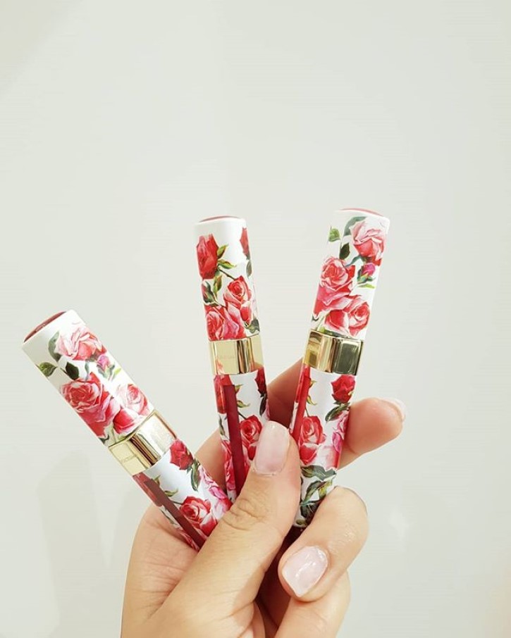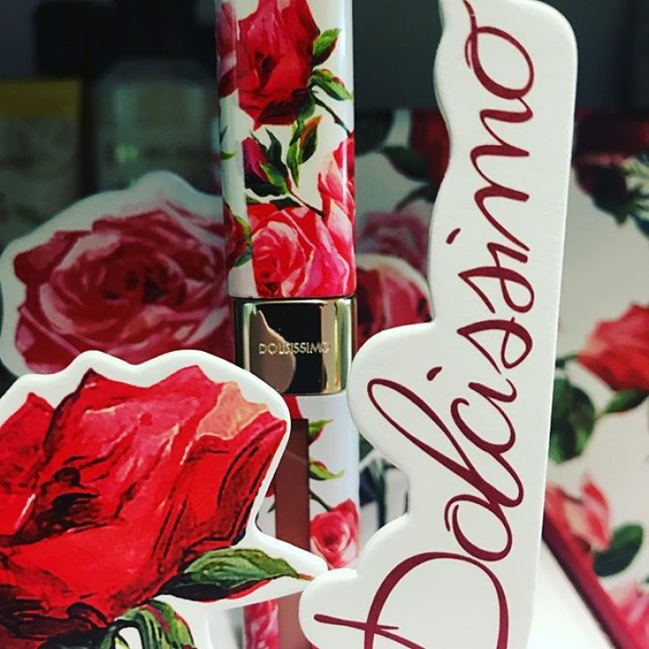 Dolce&Gabbana发布了新的Dolcissimo哑光唇釉系列,共有12只。Dolcissimo有甜美、温柔之意,这款唇釉的外壳图案也是在白色的背景上绽放朵朵红色的玫瑰花,呈现浓浓的可可西里风情,与品牌的成衣有异曲同工之风格。