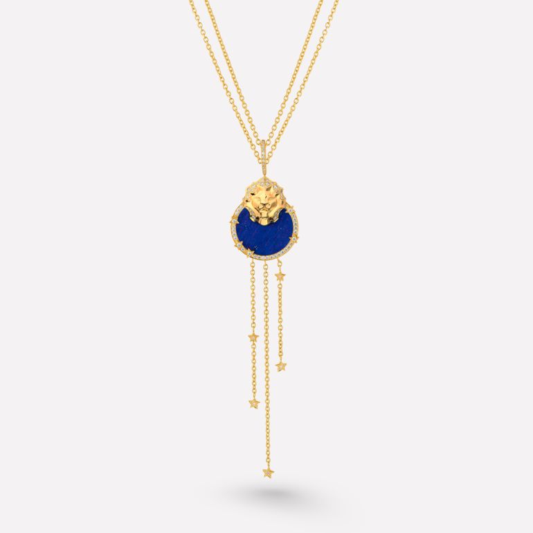 近日,SOUS LE SIGNE DU LION珠宝系列又带来八件以威尼斯雄狮为主题的全新作品。新系列中包括项链、耳饰、戒指、手镯等单品。青金石蓝和珍珠白色的项链吊坠参照了圣马可广场守护神的造型,而黄金和水晶的狮子雕塑则叫人联想起威尼斯的巴洛克风格。金质戒指的戒面镶嵌一颗水晶,点缀圆形切割钻石。这一系列中的每件单品都含有雄狮元素,辅以钻石、青金石和水晶搭配,精美绝伦。