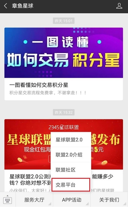 与此同时,记者从一个名为“章鱼星球”的微信服务号中,发现该微信号提供了详细的“交易攻略”,指导读者如何将积分星转移至BTBTOP交易所并进行交易套现。