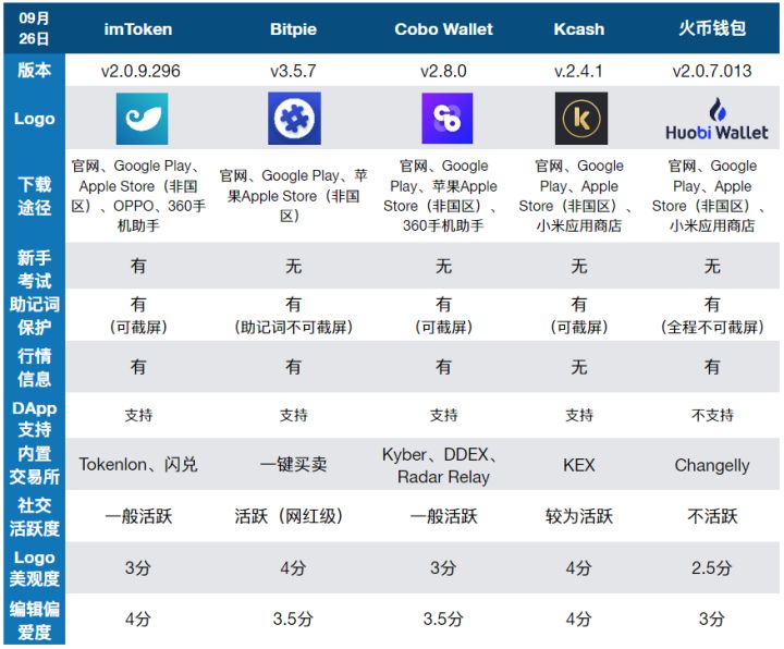 *本次测评的主力机型为 OPPO R9 PLus 和 iPhone X,安卓机已安装 Google Play 框架,iPhone 有美区 App Store 账号。每款钱包 App 因为版本不同,功能也有较大差异,因设备和网络问题,可能会与实际情况存在些许差异,如有疑问请留言或评论。本次测评中,logo 美观度与编辑偏爱程度为区块律动 BlockBeats 编辑的个人主观观点。