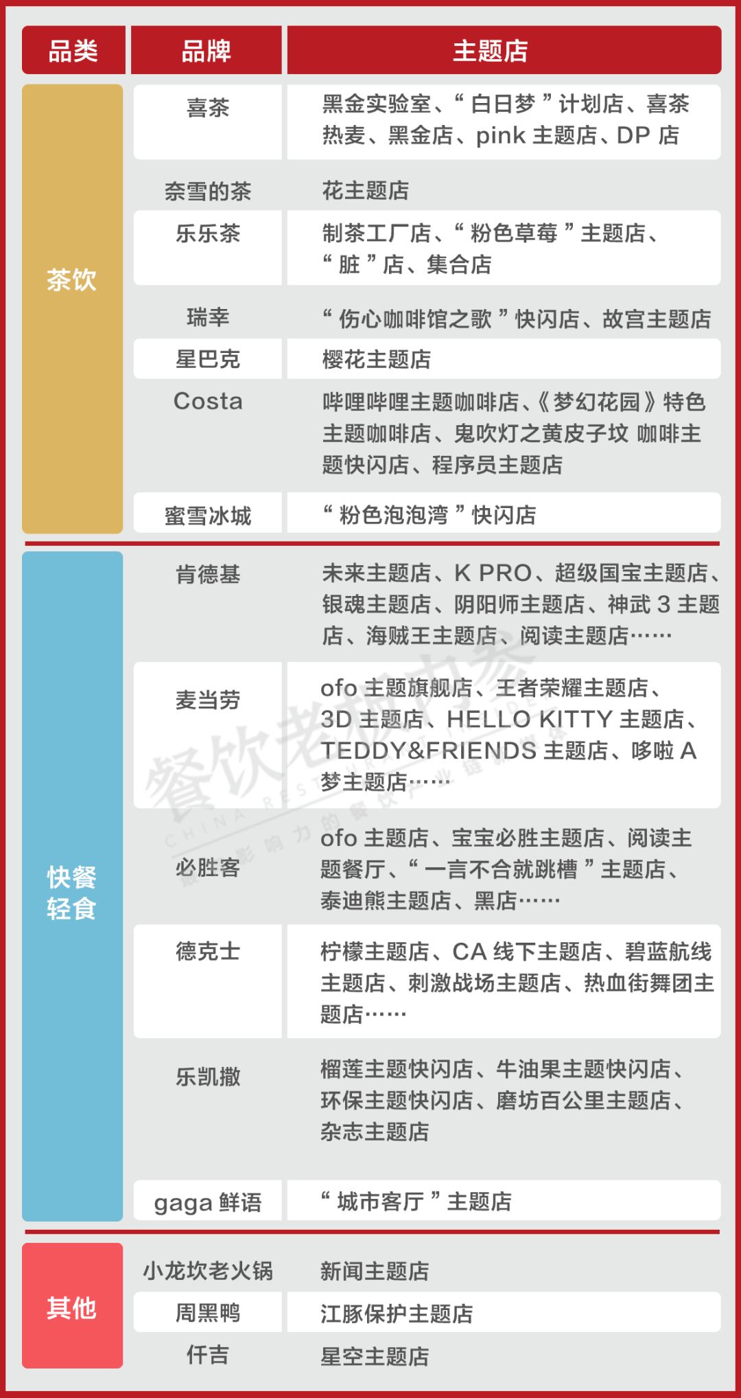 纵观上述主题门店,不难发现大致可以分为以下几类主题: