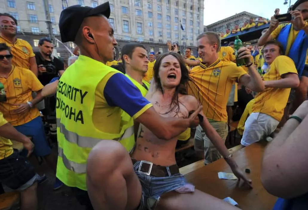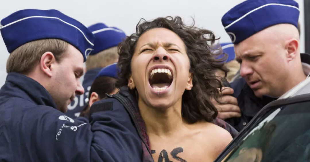 2012年1月8日,FEMEN一名女性闯进在瑞士举行的达沃斯商业论坛,突袭了论坛中的一名政商界人士,随后遭到逮捕。