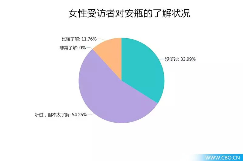 调查结果显示,有33.99%的90后受访女性表示“没听过”安瓶,54.25%表示“听说过,但不太了解”,11.76%表示对安瓶“比较了解”。显然,90后女性群体听说过安瓶的比例相对较高。