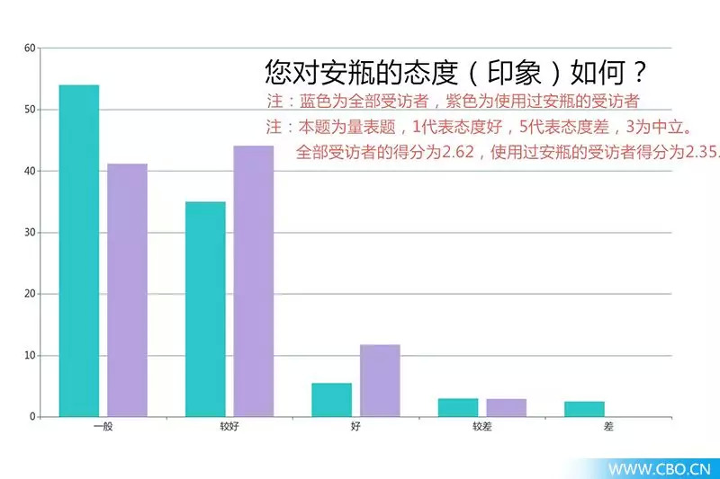 调查结果显示,90后对于使用安瓶产品持开放态度,其中使用过安瓶的受访者对安瓶更有好感。大多数受访者表示期待安瓶能够成为日常护肤品。问题“您对安瓶的态度(印象)如何?”的平均得分为2.62,可以看出受访者对安瓶有一定好感度;而使用过安瓶的受访者对产品好感度更为强烈,其平均得分为2.35。