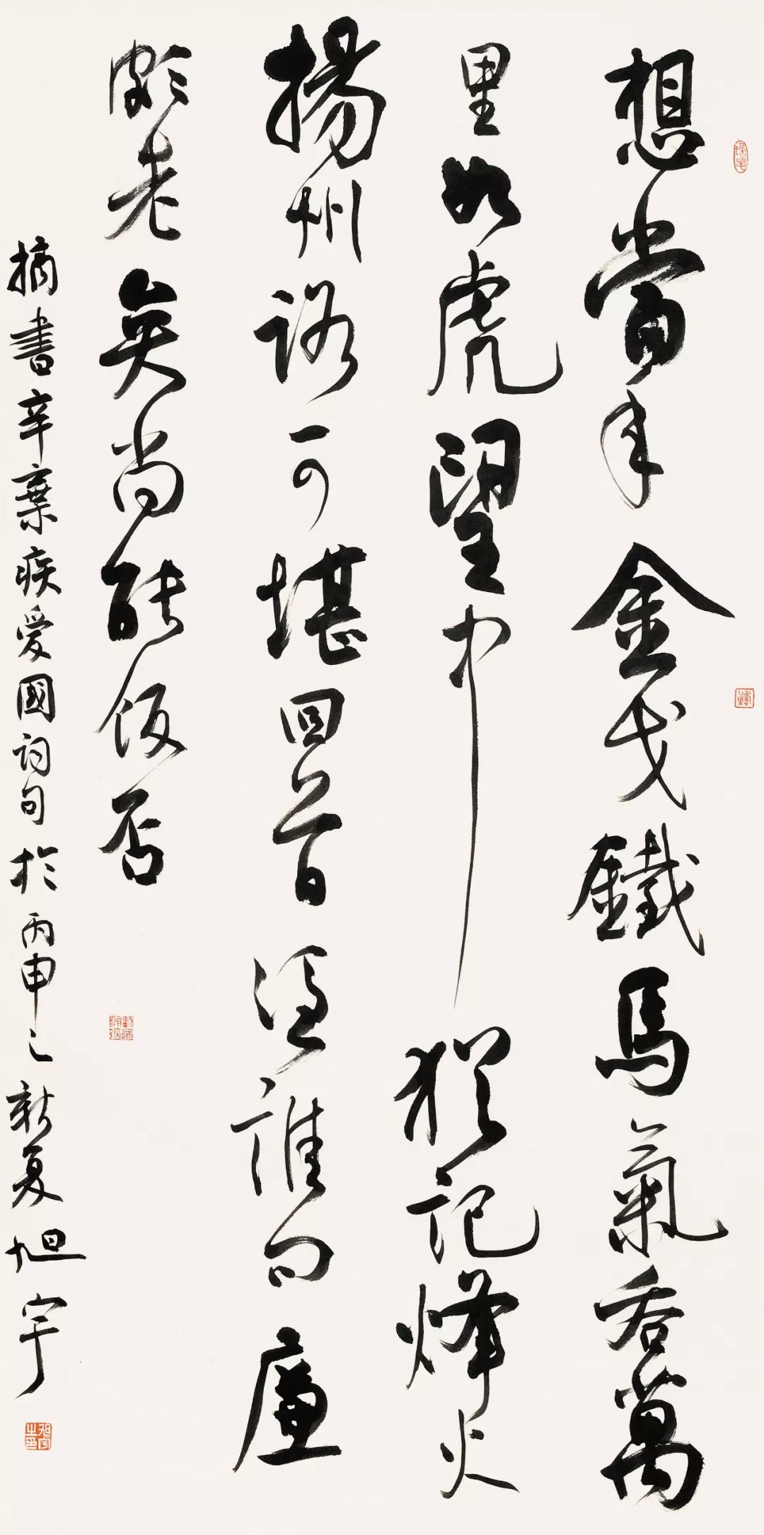 旭宇先生穷一生精力,研究《道德经》,颇有心得,对人生世事,洞若观火,已而一身正气,无欲无畏。但对艺术却有谦卑之心,矻矻以求,以小学生自居,正是这种敬畏之心,成就了旭宇先生的大事业。其实,纵观当代书坛,真正能称得上学人的又有几人?特别是在世的书家中,如旭宇先生这般老而弥坚,老而弥笃,老而弥秀,老而弥壮者,又有几人?是故,以我从业几十年的眼光,可以负责任地说,旭先生作为文人书家,在当代,可说是秦砖汉瓦,硕果仅存,能望其项背者也不多了。