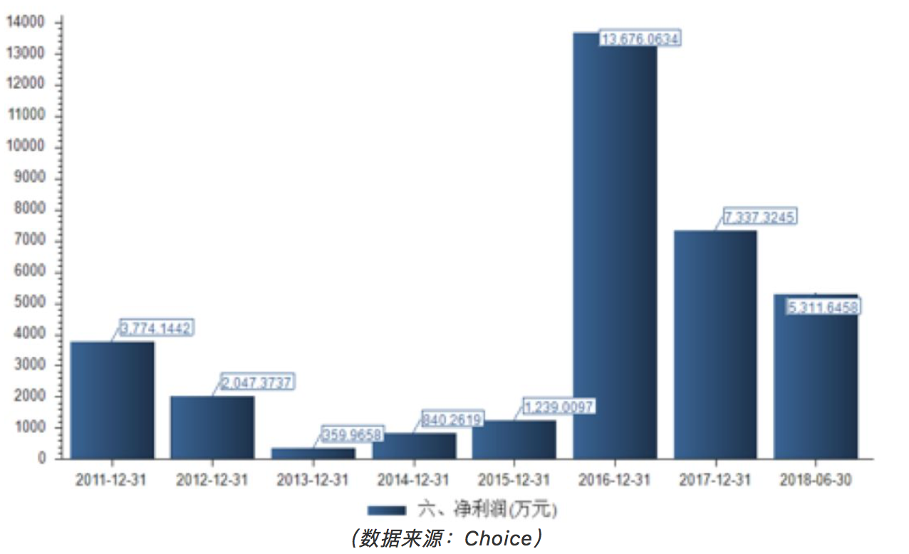 通过文化长城2011年-2018H1的净利润可以看出,2011年-2013年公司净利润不断下滑,虽然2014年-2015年的净利润出现上涨,但2015年的净利润也仅为1239万元。不过在2016年公司净利润却猛增至1.37亿元,这与其教育业务密不可分。