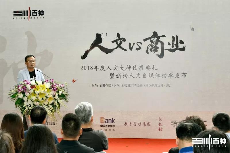 10月23日,百神传媒在聚龙古村·源汀举办2018年度人文大神致敬典礼暨百神+新榜人文自媒体榜单发布。