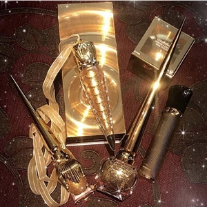 从眼线笔看起,它融合了水和金属颜料,以产生镜面般的反射效果。涂上不厚重,持久度也很好。刷毛设计得比较短,以便于细致地描绘眼线。睫毛膏会在睫毛上呈现一层金色的光泽,而且能有效地保持睫毛的卷曲度。唇釉里面有闪亮的金粉和珠光颜料,涂上之后会让嘴唇获得无与伦比的金色。如果不想太夸张,也可以和其他口红搭配使用来提升亮度。金色的指甲油具有高光泽度的表面和大颗粒亮片,在灯光下看起来十分高调闪耀。
