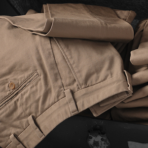卡其裤最本质的颜色呈黄褐色,最开始是用茶树叶子中提取的深紫红色的植物汁水染制而成,这种颜色在北印度语中就被称为“卡其”。根据流传最广的一种说法,卡其裤最早出现于1848年,是英国军官Harry Lumsden为了让士兵能在印度草原上更隐蔽的作战而发明的。