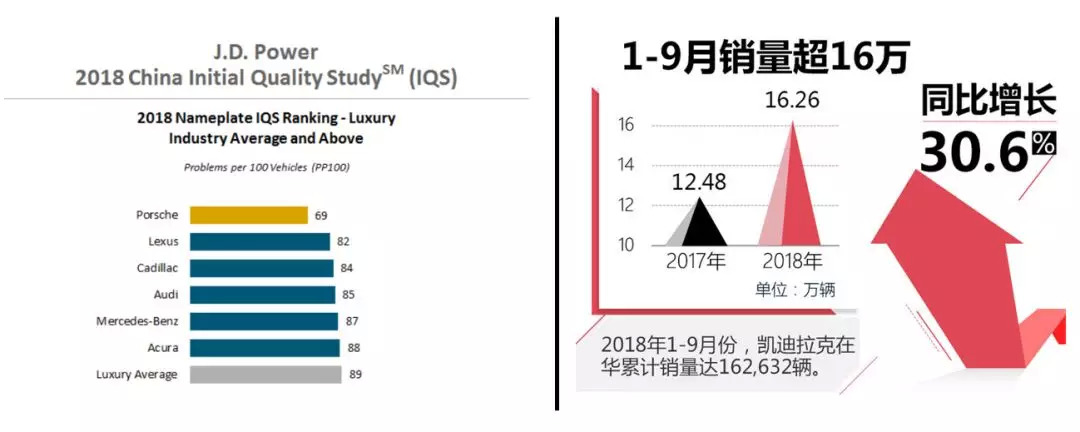 在豪华车品牌的IQS排名中,凯迪拉克以第三名的成绩脱颖而出,彰显了其产品的可靠性。也正是因为出色的产品品质,凯迪拉克在市场上大获成功。在今年车市同比增速不足1.5%的背景之下,1-9月凯迪拉克在华销量达16.26万辆,同比增长30.6%。在跑赢大市的同时,凯迪拉克也成为豪华车品牌中增速最快的品牌之一。