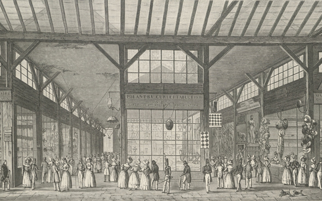 “那个时期,木廊商场在巴黎赫赫有名,是个挺好玩的地方。那藏垢纳污的集市值得描写一番,因为它在三十六年之间对巴黎生活影响极大,四十岁左右的人看了我的叙述很少不感兴趣,虽则年轻人觉得难以相信。”巴尔扎克在他史诗般的作品《幻灭》中这样写道。