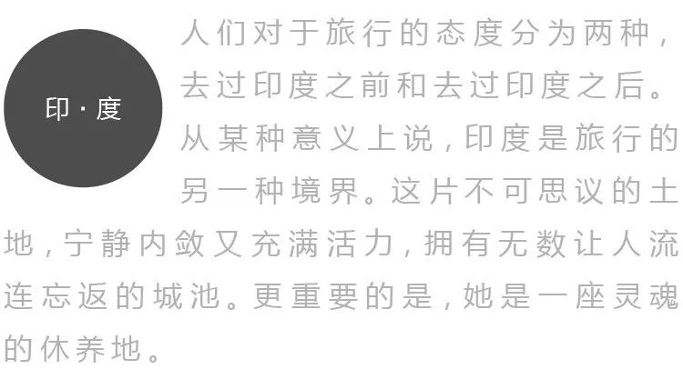 人们对于旅行的态度分为两种,去过印度之前和去过印度之后。从某种意义上说,印度之行,是可以把人的旅行态度提升至另一种境界的。这个被“过度妖魔化”的土地实则在等待无数灵魂的探路。