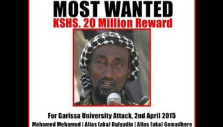 美国有线电视新闻网(CNN)4月5日援引肯尼亚内政部长的推特消息报道,肯尼亚政府确认4月2日发生在肯尼亚东北部加里萨大学的恐怖袭击背后的主谋为穆罕默德·马哈茂德(Mohamed Mohamud)。此人也化名杜里亚丁(Dulyadin)和贾迈德莱(Gamadhere)。